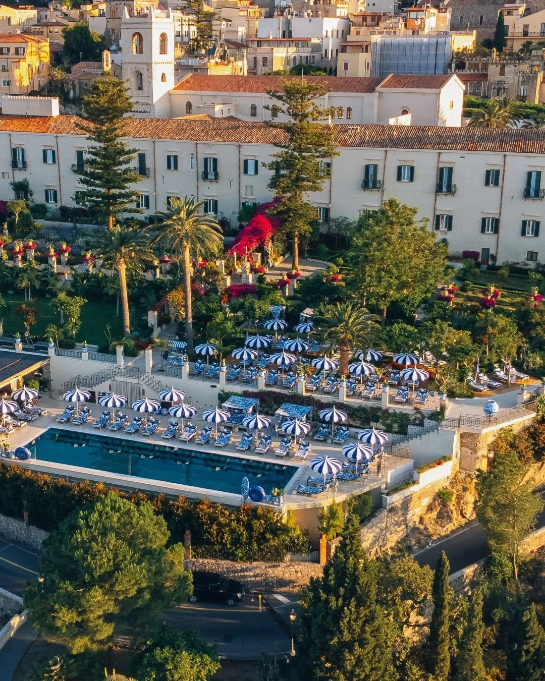 A clifftop perch above the Ionian Sea where ancient Greek theater ruins meet modern Sicilian luxury. Terraced gardens descend toward a private beach club, while suites with stone columns and frescoed ceilings pay homage to Taormina's layered history as Sicily's most romantic hideaway.